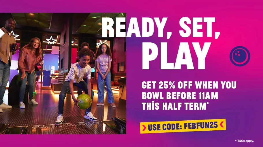 Jump into half‑term fun early and score 25% off standard games booked to play before 11am. Book now with code FEBFUN25*