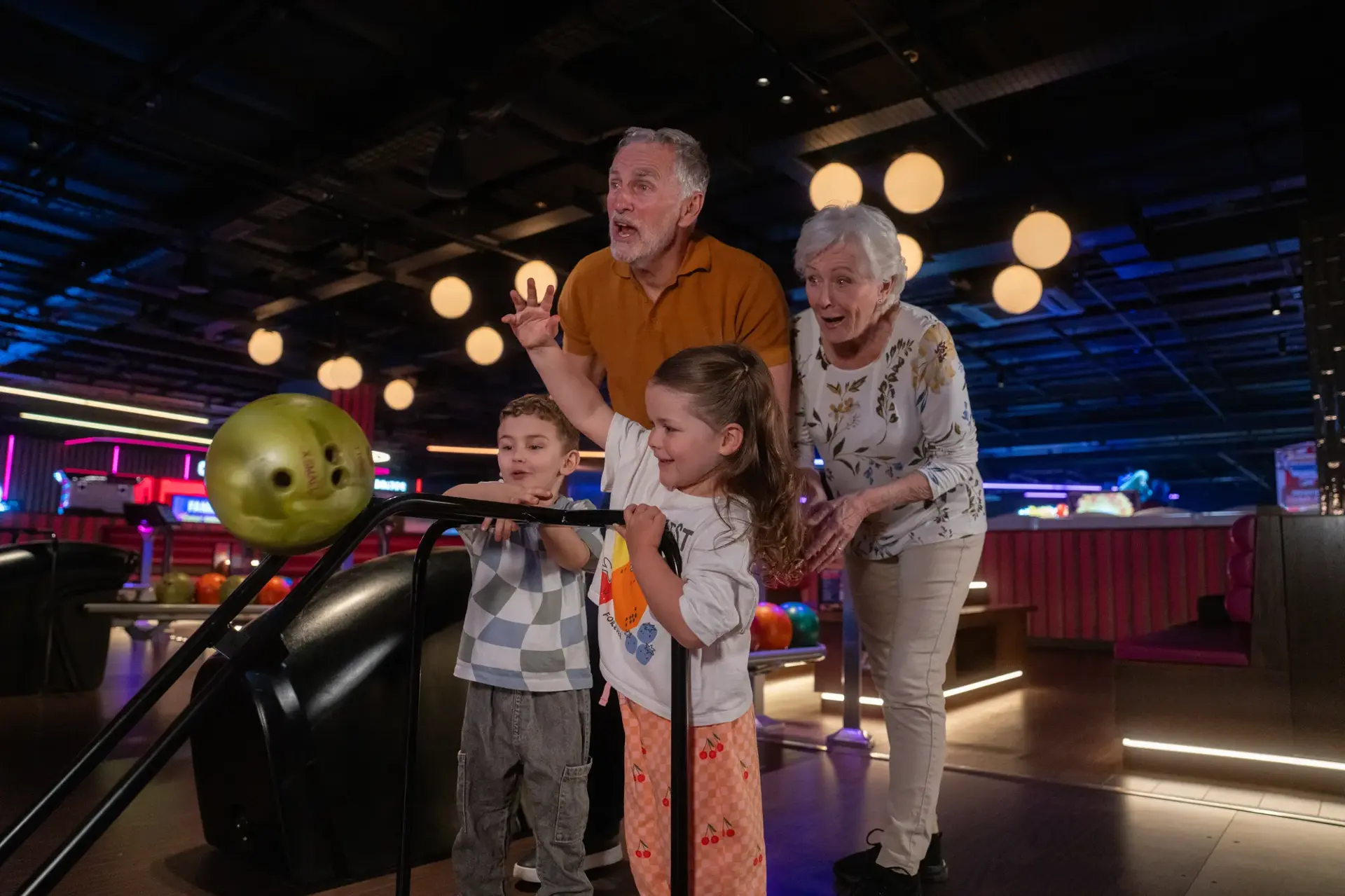 🌈 Bright, colourful surroundings and friendly team members who love helping first-time bowlers, with an exciting arcade zone full of lights and laughter.