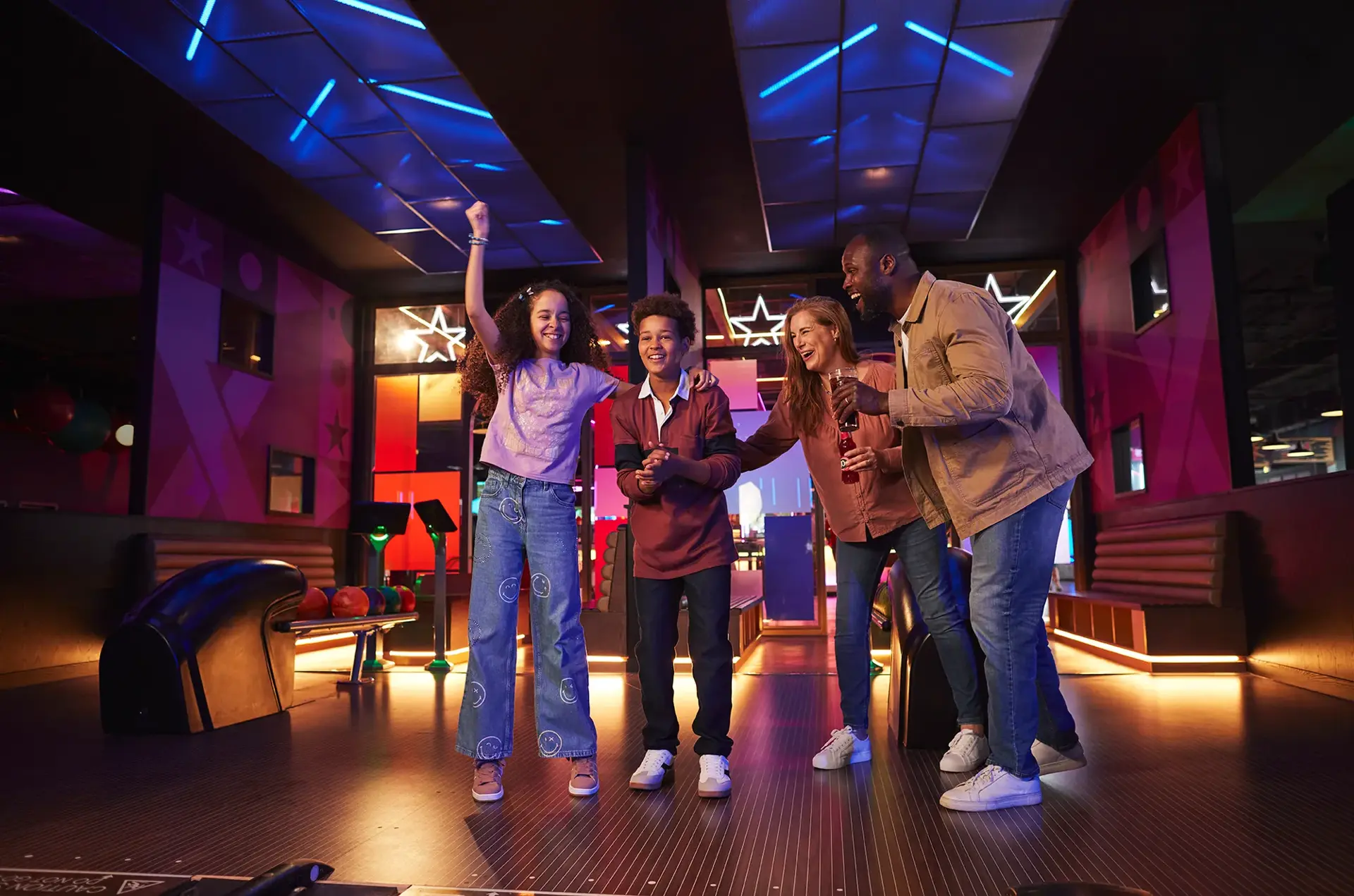Our Annual Family Fun Pass entitles a family of four to a complimentary game of bowling, plus food & drink, every month for 12 months - meaning you can make memories together for an entire year for free!